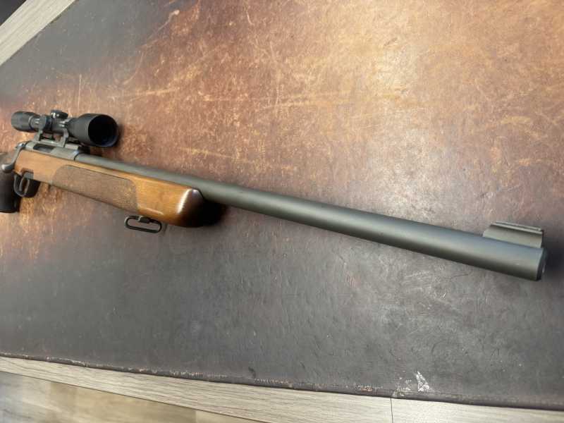Von uns aufgebauter Mauser 98, EAW Montagebasen, Mündungsgewinde, seitlicher 3-Stellungssicherung, Lochschaft 1399.-